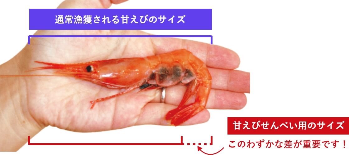 また、小さく若い甘えびは殻のトゲトゲしさが少なく、口当たりの良いえびせんべいに仕上がります。