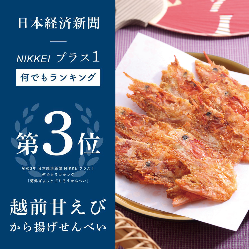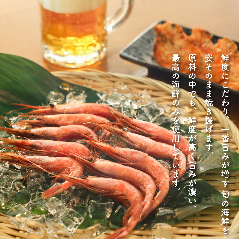 - 甘えびを姿そのまま丸ごとお煎餅に。